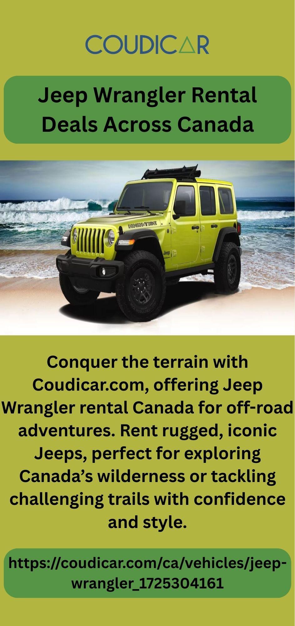 Conquer the terrain with Coudicar.com, offering Jeep Wrangler rental Canada for off-road adventures. Rent rugged, iconic Jeeps, perfect for exploring Canada’s wilderness or tackling challenging trails with confidence and style.